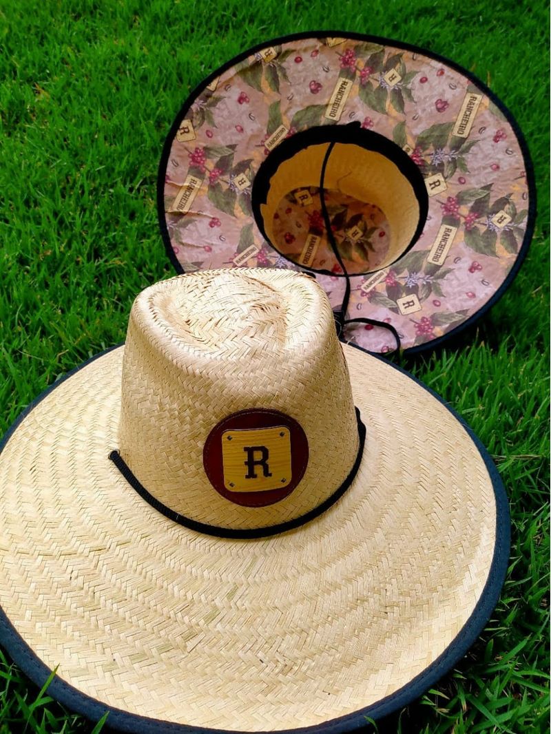 Lindo e Tradicional Chapéu de Palha Rancheiro com logo em aplique 3D e forro estampado. 100% poliéster.